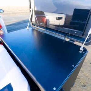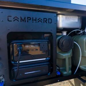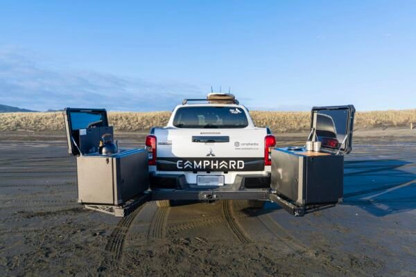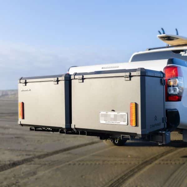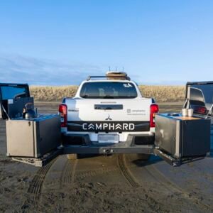 Hatch is a next-generation Camping Unit built to make camping simpler and more flexible — no trailers, no hassle. It mounts to your vehicle’s 50mm towbar receiver and swings open to provide clear access to your boot or tailgate, while revealing modern essentials like a sink, gas hobs, fridge, and power.